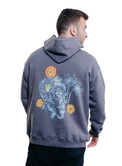Flower Face Oversize Hoodies-Charcoal Grey